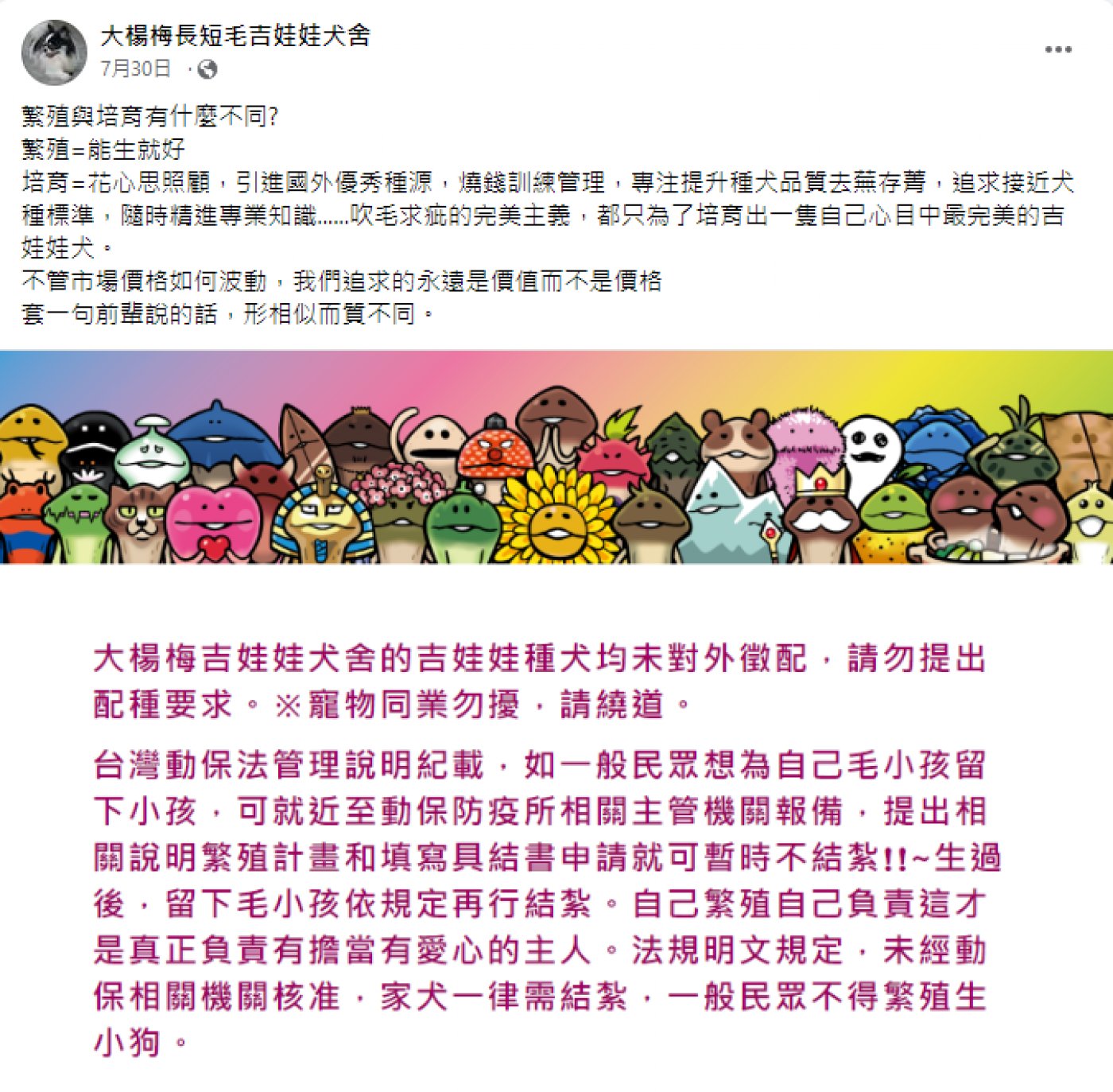 - 商品名稱:犬舍種公母犬沒有對外徵配買賣服務。
