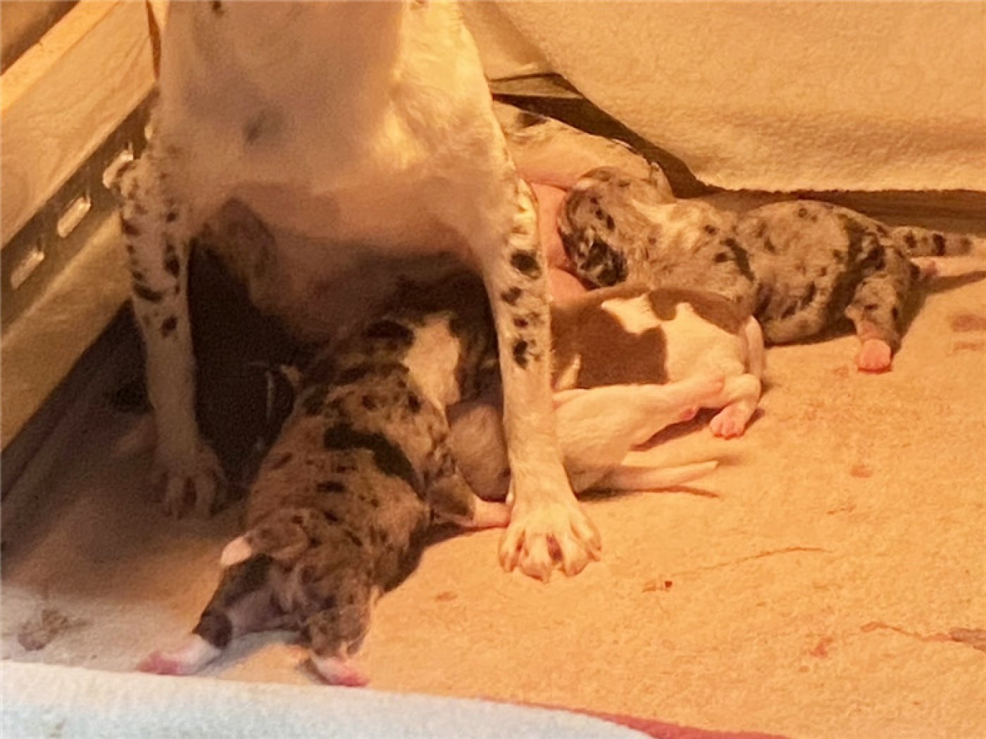 剛出生仔娃前三周,母犬的重點是關心幼犬的生存,以及食物,溫暖,和安全。如果這時候去打擾去碰觸幼犬會造成母犬心理極大壓力和害怕。甚至嚴重時會含咬幼犬離槽藏躲,造成幼犬保暖不夠或擠壓窒息而死亡或受到驚嚇踩死幼犬。第四周,幼仔的需要仍以母犬為中心,在母親離開窩時提供溫暖和安全,也就是前四周交給母犬就可以了。作主人的狗爸只要照護好母犬不受干擾讓母犬專心盡責照顧好小孩。