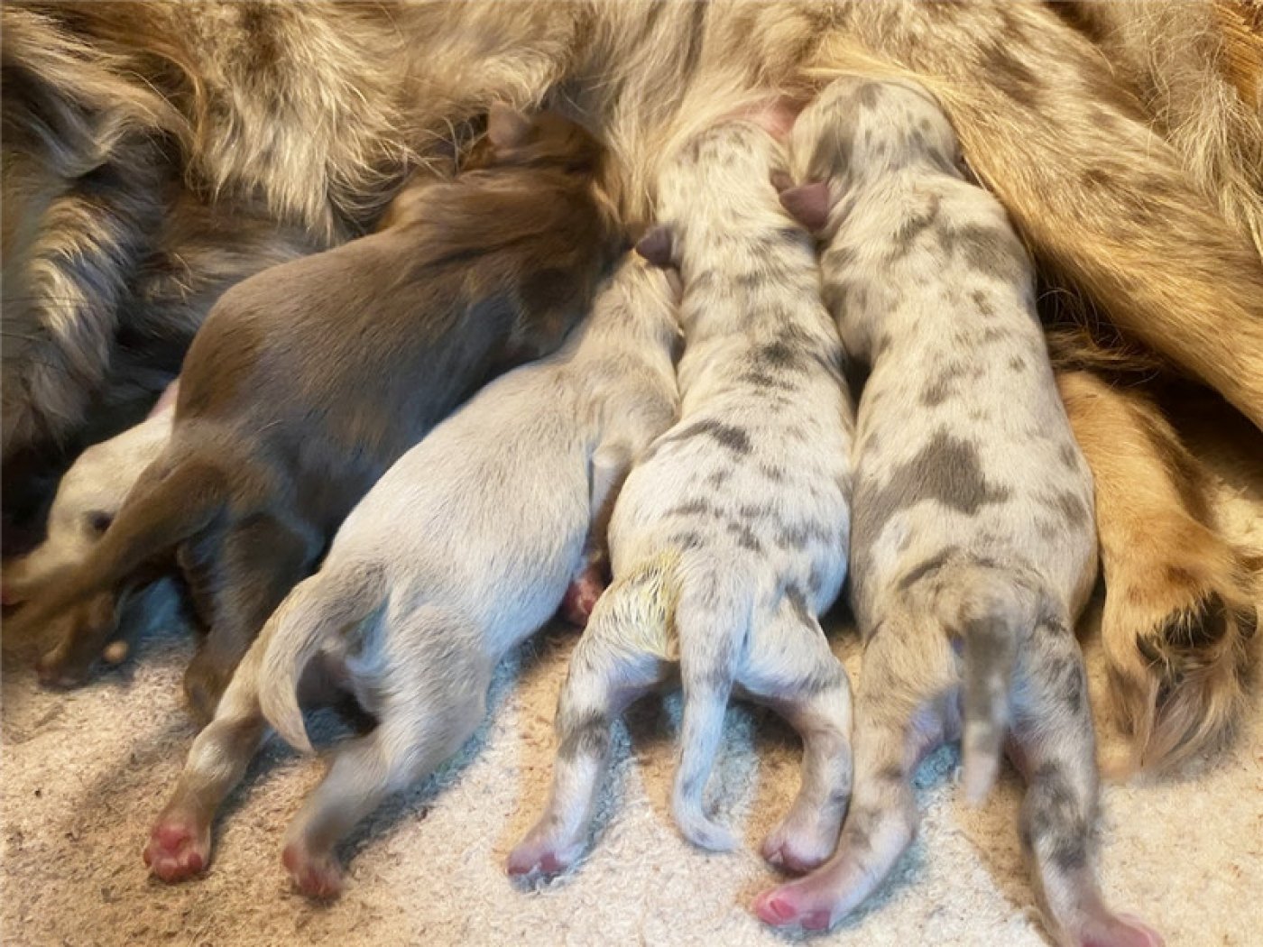 剛出生仔娃前三周,母犬的重點是關心幼犬的生存,以及食物,溫暖,和安全。如果這時候去打擾去碰觸幼犬會造成母犬心理極大壓力和害怕。甚至嚴重時會含咬幼犬離槽藏躲,造成幼犬保暖不夠或擠壓窒息而死亡或受到驚嚇踩死幼犬。第四周,幼仔的需要仍以母犬為中心,在母親離開窩時提供溫暖和安全,也就是前四周交給母犬就可以了。作主人的狗爸只要照護好母犬不受干擾讓母犬專心盡責照顧好小孩。