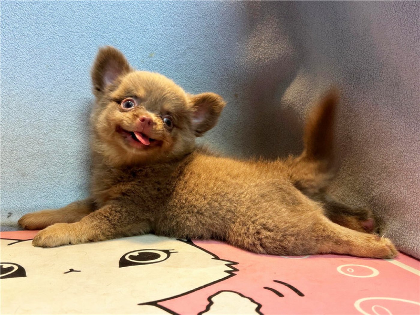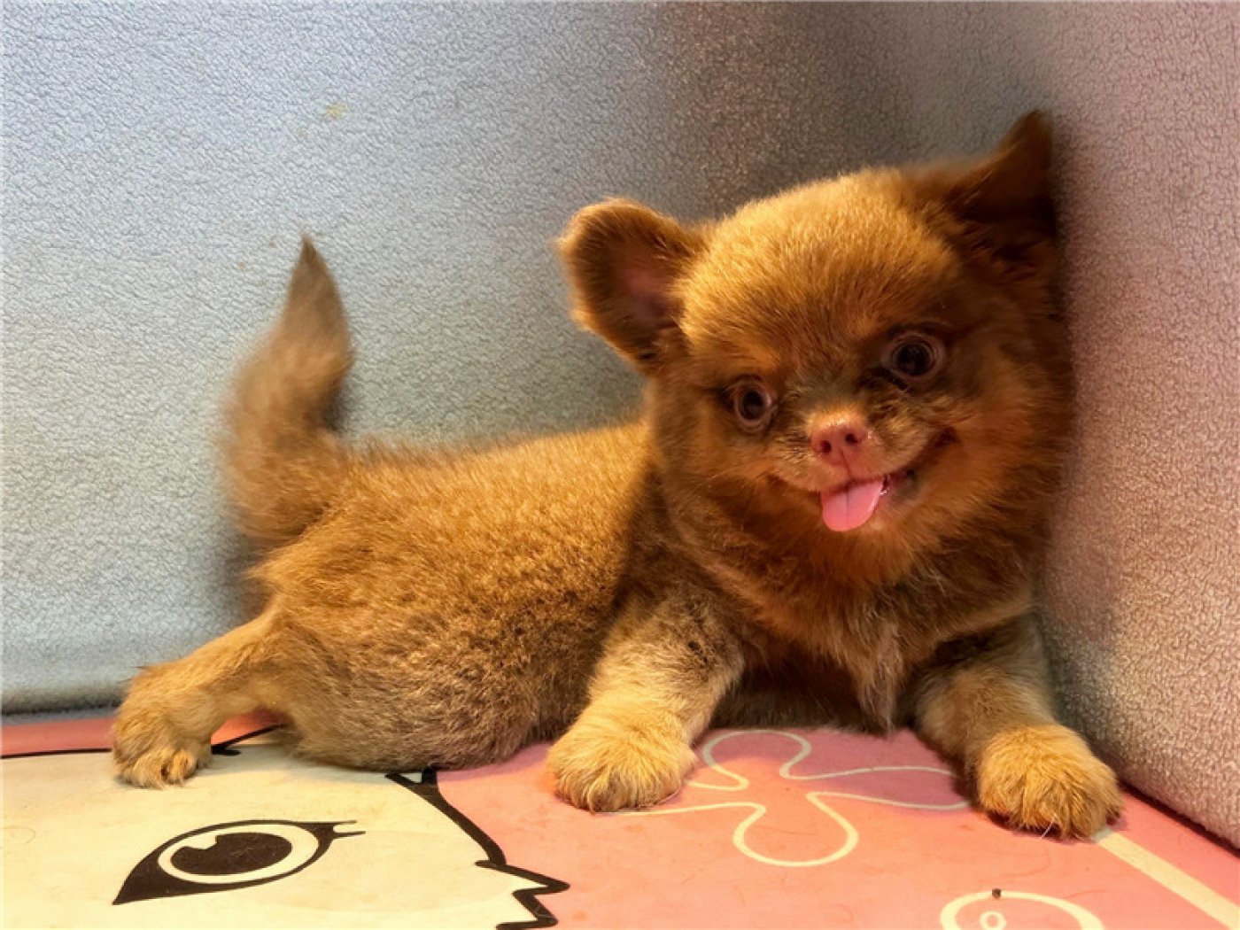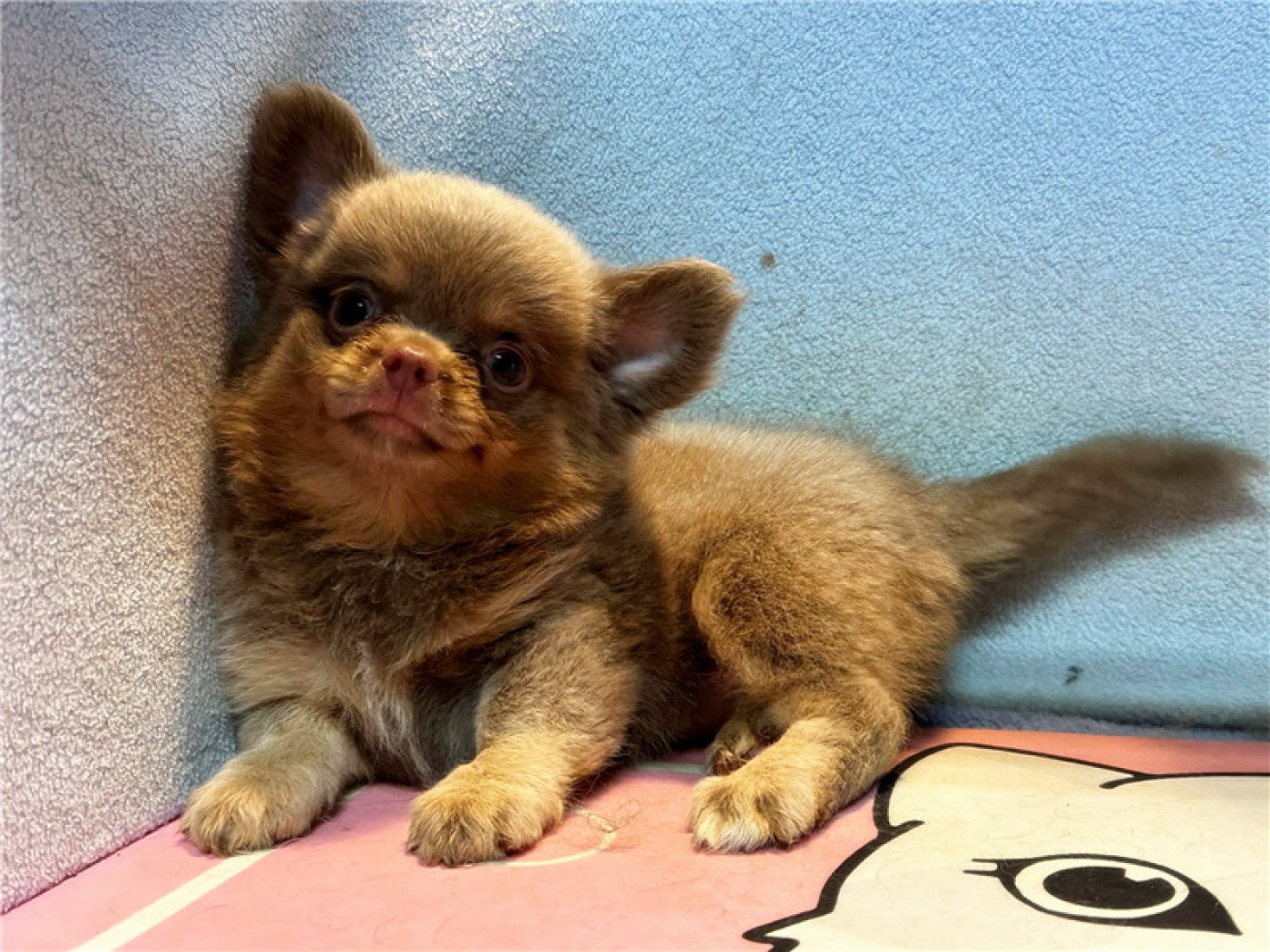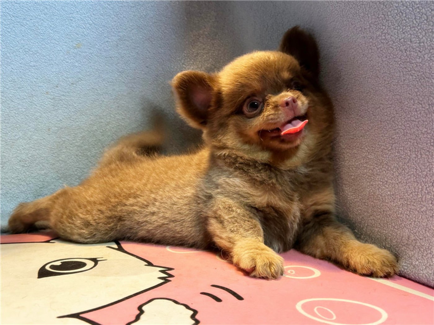 居住 : 4隻吉娃娃住一間寬6呎×深2呎白鐵自動沖洗籠,採籠內小木屋控溫飼養。