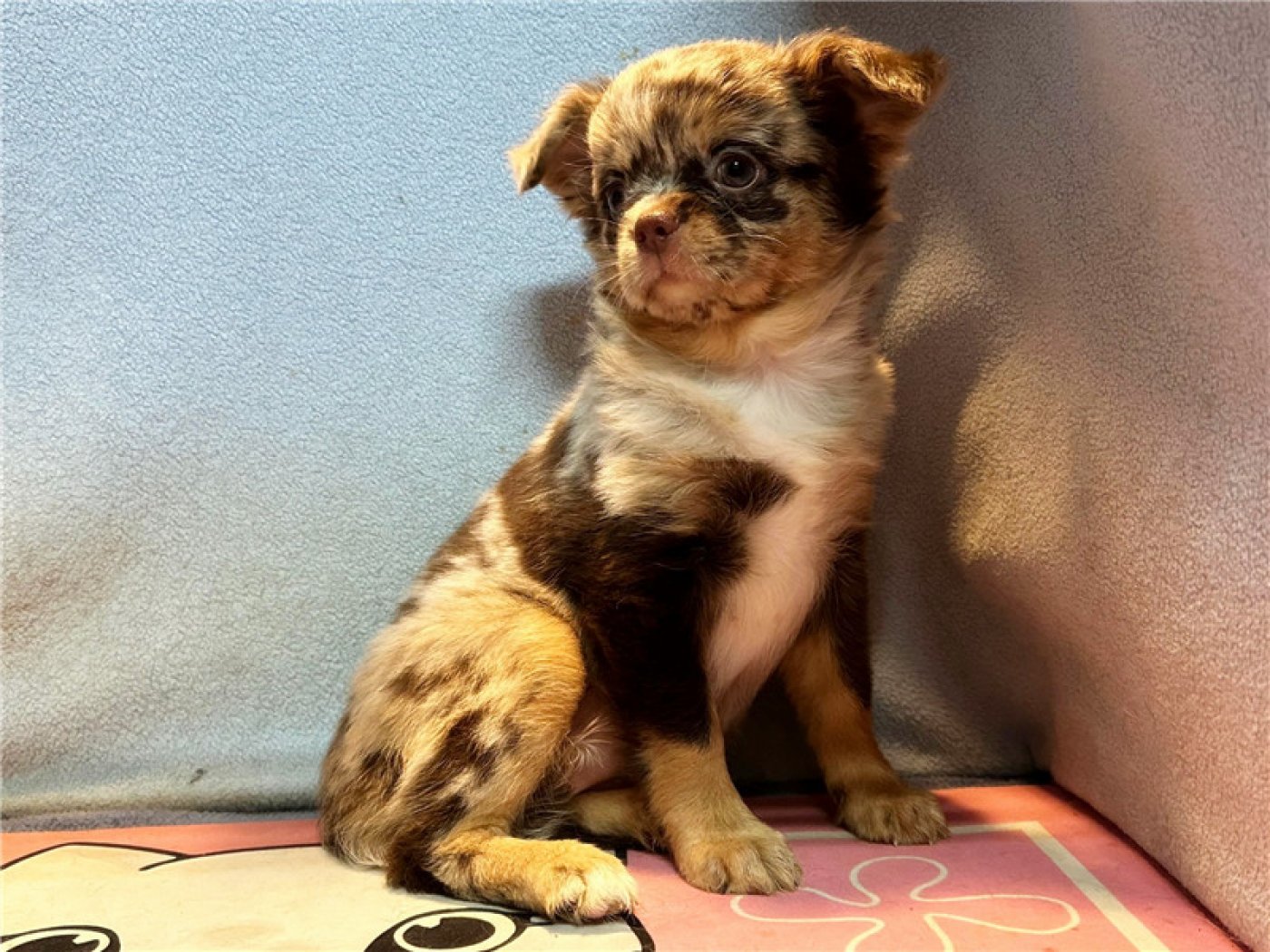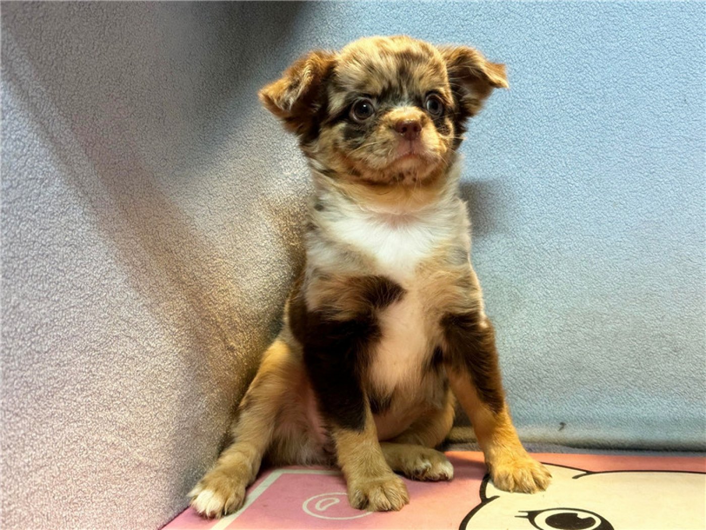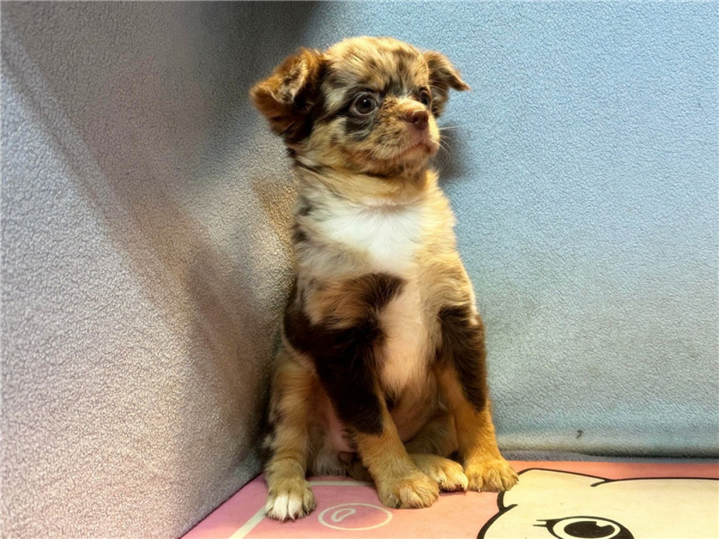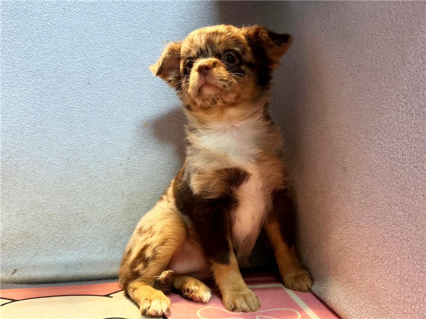居住 : 4隻吉娃娃住一間寬6呎×深2呎白鐵自動沖洗籠,採籠內小木屋控溫飼養。