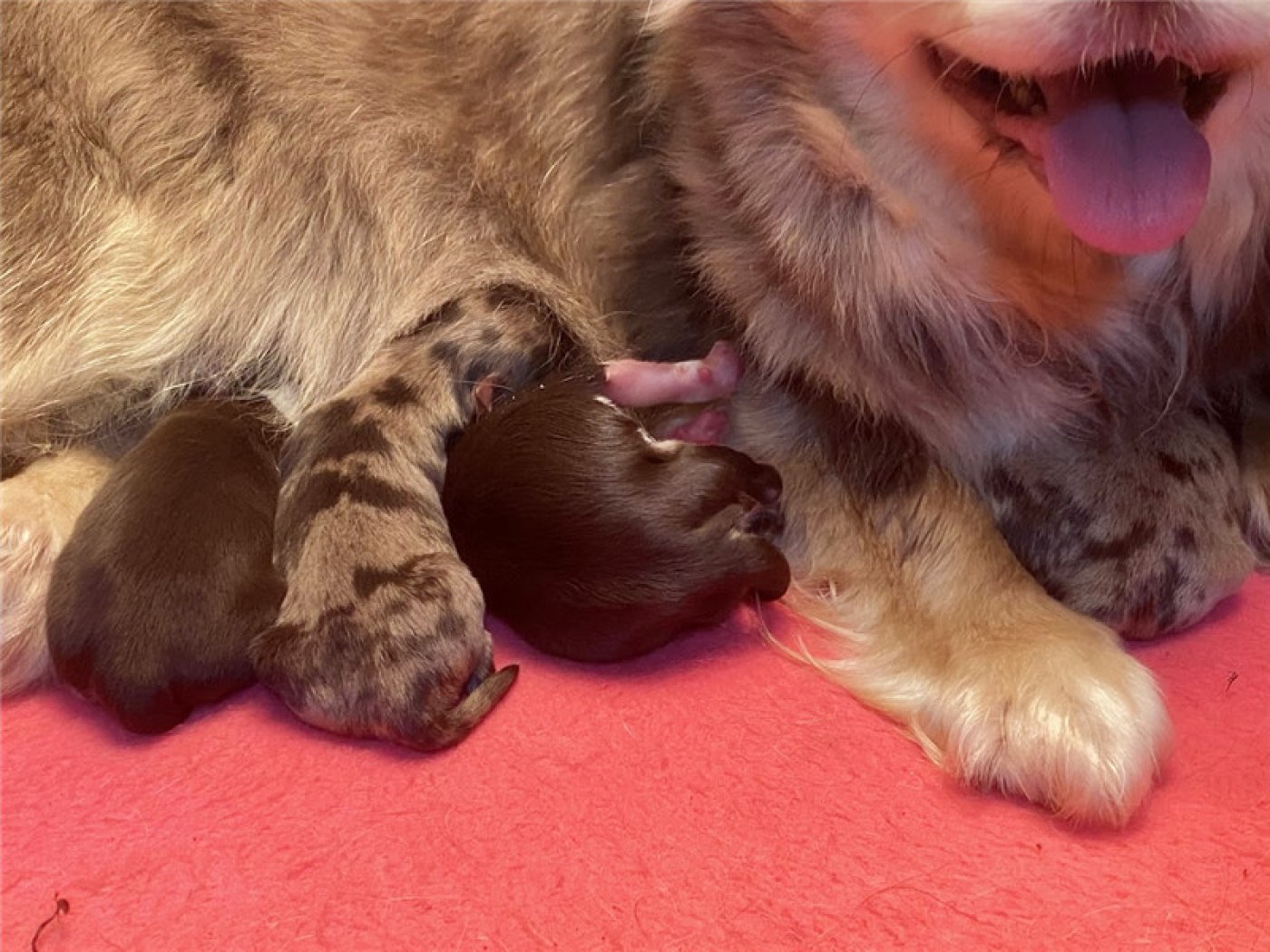 剛出生仔娃前三周,母犬的重點是關心幼犬的生存,以及食物,溫暖,和安全。如果這時候去打擾去碰觸幼犬會造成母犬心理極大壓力和害怕。甚至嚴重時會含咬幼犬離槽藏躲,造成幼犬保暖不夠或擠壓窒息而死亡或受到驚嚇踩死幼犬。第四周,幼仔的需要仍以母犬為中心,在母親離開窩時提供溫暖和安全,也就是前四周交給母犬就可以了。作主人的狗爸只要照護好母犬不受干擾讓母犬專心盡責照顧好小孩。
