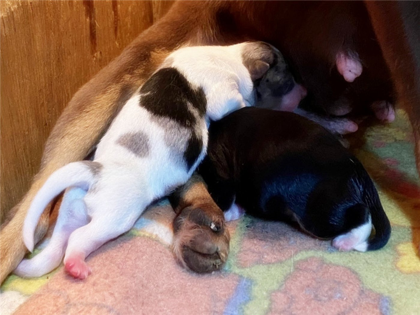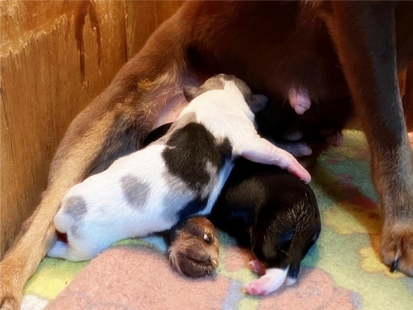 剛出生仔娃前三周,母犬的重點是關心幼犬的生存,以及食物,溫暖,和安全。如果這時候去打擾去碰觸幼犬會造成母犬心理極大壓力和害怕。甚至嚴重時會含咬幼犬離槽藏躲,造成幼犬保暖不夠或擠壓窒息而死亡或受到驚嚇踩死幼犬。第四周,幼仔的需要仍以母犬為中心,在母親離開窩時提供溫暖和安全,也就是前四周交給母犬就可以了。作主人的狗爸只要照護好母犬不受干擾讓母犬專心盡責照顧好小孩。