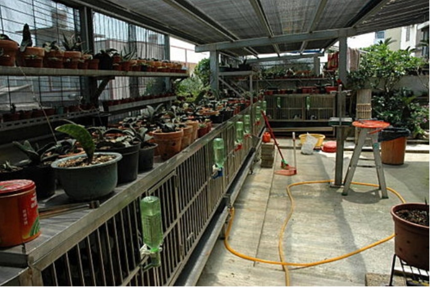 居住 : 4隻吉娃娃住一間寬6呎×深2呎白鐵自動沖洗籠,採籠內小木屋控溫飼養。